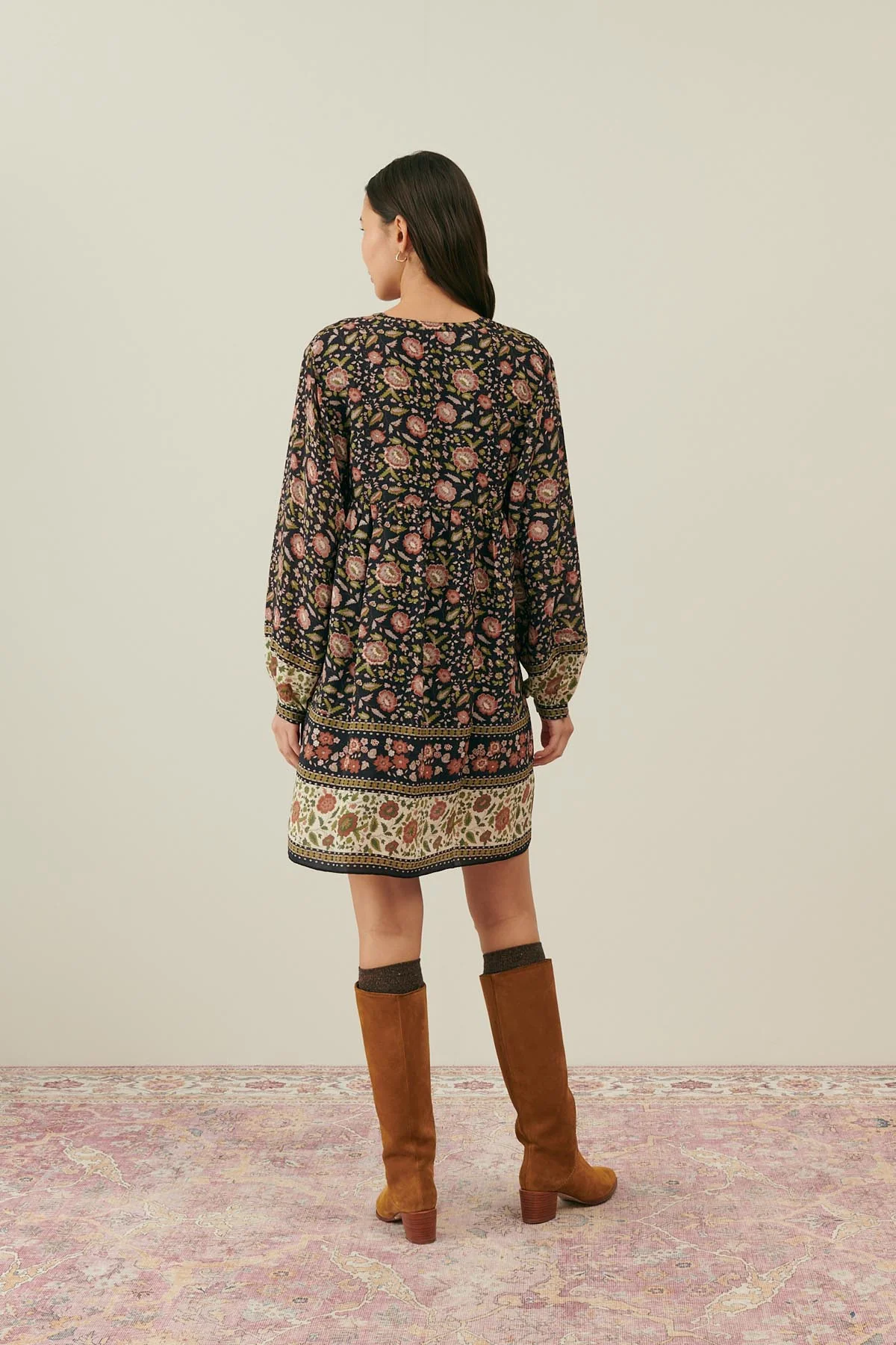 La robe courte bohème qui fait la part belle aux imprimés fleuris d’inspiration indienne. Désormais un classique de Louise Misha, on aime son volume ample et son tombé fluide et féminin.